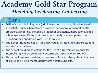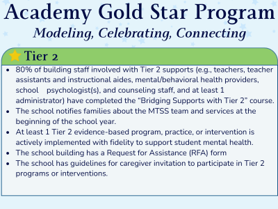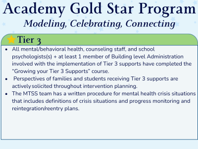 Schools may apply for a Gold Star in each Tier of MTSS implementation, earning up to four stars total.